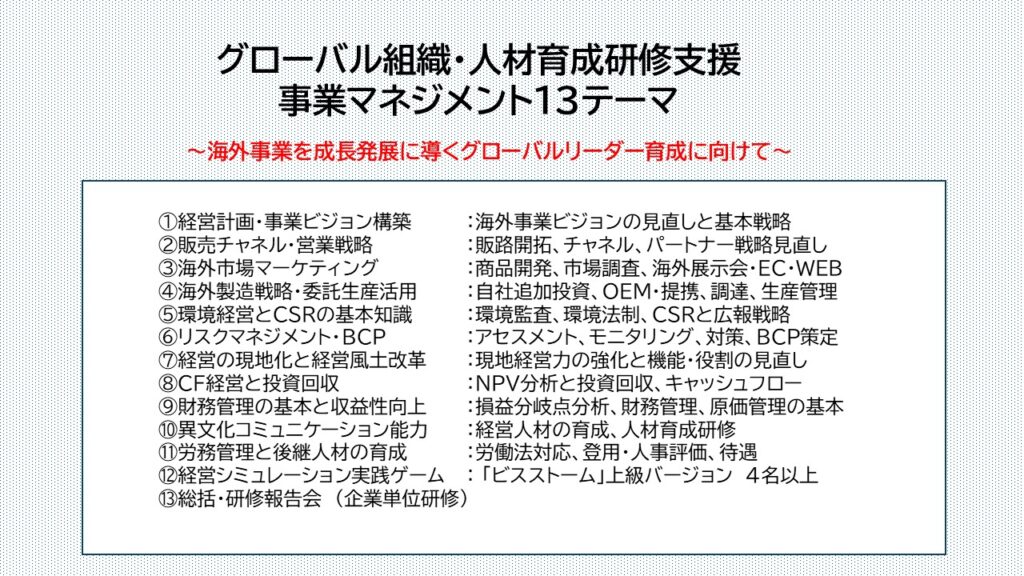 ・事業マネジメント13テーマ別講座研修