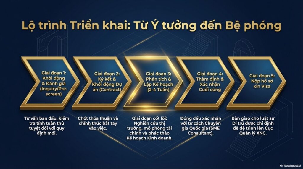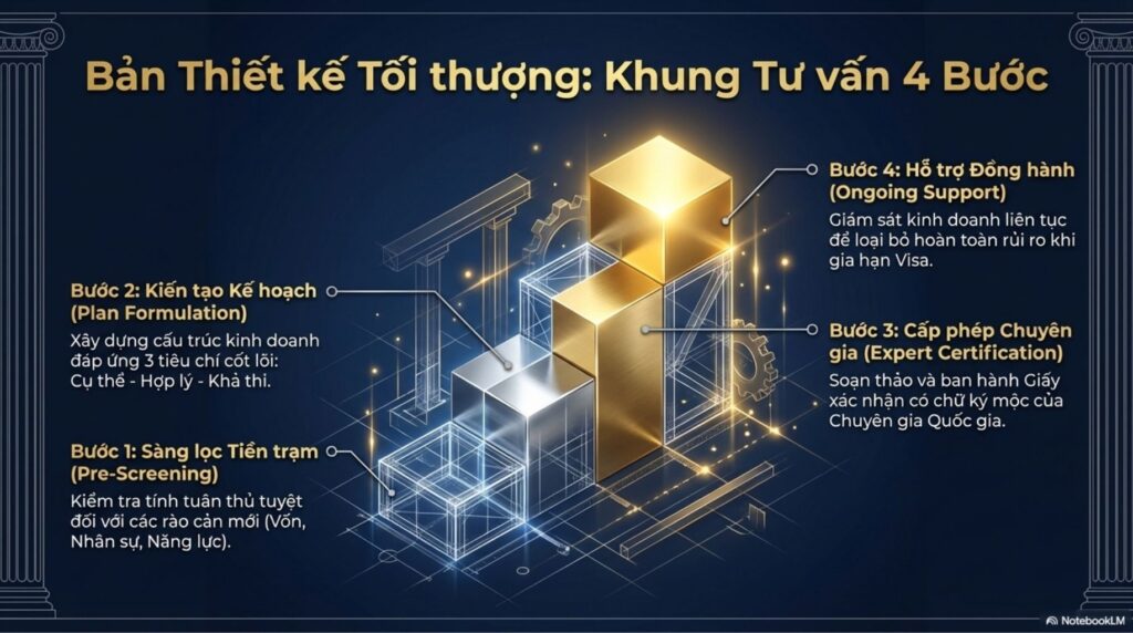 Tuy nhiên, xét từ góc độ đánh giá tính thực chất của kế hoạch kinh doanh theo yêu cầu của cơ quan xuất nhập cảnh, trong nhiều trường hợp, rất có khả năng kế hoạch kinh doanh cần được rà soát và cải thiện một cách căn bản. Chúng tôi không cung cấp dịch vụ mang tính chất “làm thay” đơn thuần như chỉ chỉnh sửa kế hoạch kinh doanh để phát hành văn bản xác nhận. Thay vào đó, chúng tôi cũng cung cấp gói tư vấn hỗ trợ, thông qua bước sàng lọc ban đầu, nhằm nâng cấp (brush-up) kế hoạch kinh doanh lên mức độ có thể được chấp thuận trong quá trình thẩm định visa “Quản lý – Kinh doanh”.