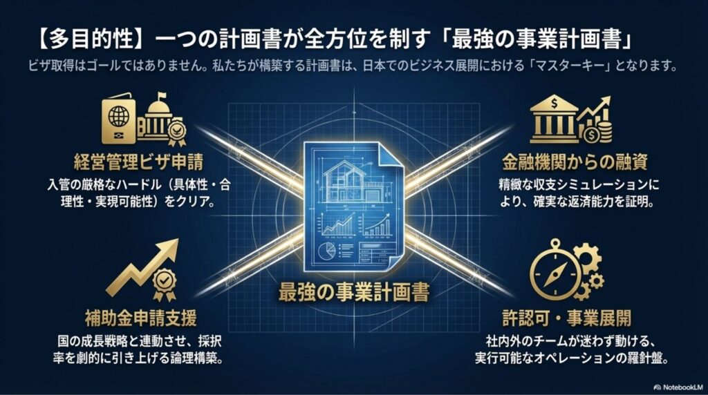 「絵に描いた餅」のような計画書では、専門家の署名すら得られず、申請の土俵にすら立てない時代が来ているのです。さらに事業計画書が必要とされるのは「経営管理ビザ」の認可だけではありません。